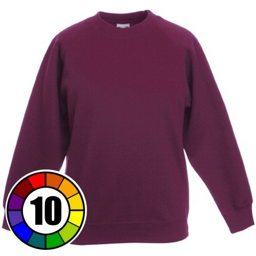 Plain Un-Branded Kid's Easycare 70% Cotton 30% Polyester Raglan Sleeve Sweatshirt. Comfortable Seamless Cotton/Lycra Rib Crew Neck, Generous Full Cut with Tubular Construction for Shape Retention. Twin Needle Stitching Detail on Neck