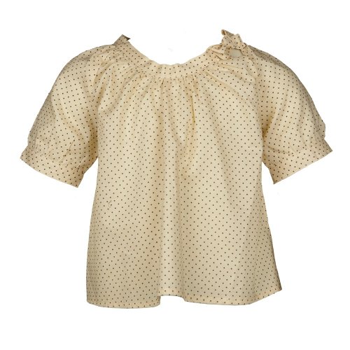 Caramel Baby & Child Maggie Pale Yellow Polka Dot Blouse. Short Sleeves and Bow Detail on Neckline. Popper Button Fastenings to Back. 100% Cotton. Machine Washable