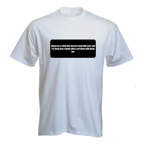Show me a child who doesn't play with toys, and I'll show you a father who's not done with them yet. - Funny Printed T-Shirt [BLK8582]