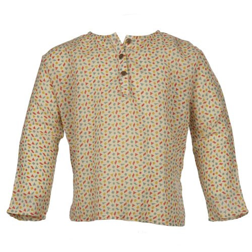 Caramel Baby & Child Kiko Beige Cotton Print Long Sleeved Blouse Top. Round Neck and Three-Button Front Fastening