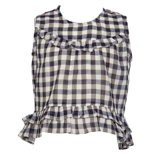 Caramel Baby & Child Megan Navy Blue and White Large Check Loose Fitting Frilly Cotton Top. 100% Cotton. Machine Washable